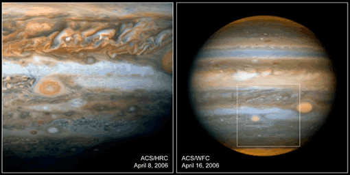 Em Júpiter existe cerca de uma dúzia de ventos dominantes, com velocidades que podem atingir 150 m/s no equador. Na Terra os ventos são provocados pela grande diferença de temperatura entre os pólos e o equador (cerca de 40º Celsius), mas os pólos e o equador jovianos estão à mesma temperatura (pelo menos no topo das nuvens).